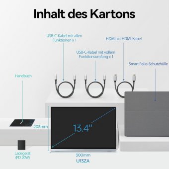 - Interfaces: 1 X HDMI (Videoeingang), USB-C (Stromversorgung)
