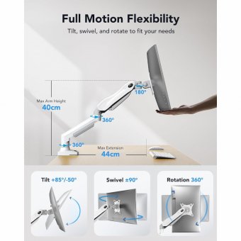 Der Monitorarm hat ein sehr elegantes Design mit integriertem Kabelkanal, ist leicht aufzubauen und kann auf den Tisch entweder geklemmt oder aber auch per Bohrung befestigt werden (Montagematerial und Anleitungen für beide Varianten werden mitgeliefert)