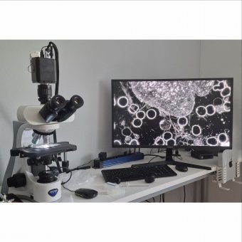 Multi-Signalausgang: Die Kamera kann entweder direkt an einen HDMI-Monitor (über das mitgelieferte HDMI-Kabel) oder alternativ an einen PC (über das mitgelieferte USB-Kabel) angeschlossen werden. In beiden Modi bietet die Kamera ausreichend hohe Bildwiederholungsraten, um mikroskopische Bewegungen zu verfolgen und aufzunehmen. Die Kamera kann aber auch im Mischbetrieb benutzt werden, indem Sie am PC arbeiten und das Bild zusätzlich über den HDMI-Ausgang zu einem zweiten HDMI-Monitor übertragen.