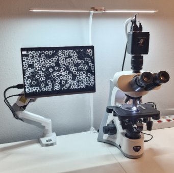 Multi-Signal Output: The camera can be connected either directly to an HDMI monitor (via the supplied HDMI cable) or alternatively to a PC (via the supplied USB cable). In both modes, the camera provides sufficiently high frame rates to track and record microscopic movements. The camera can also be used in mixed operation, where you work on the PC and additionally transmit the image via the HDMI output to a second HDMI monitor.